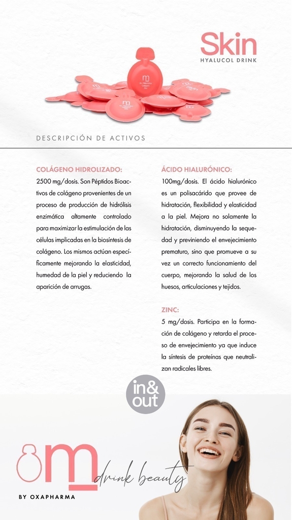 El Skin Colágeno y Hialurónico Drink es la solución perfecta para quienes buscan mejorar la salud de su piel desde adentro. Su fórmula avanzada combina ingredientes que actúan sinérgicamente para hidratar, fortalecer y rejuvenecer la piel. Ideal para quienes desean resultados visibles en poco tiempo, con una forma de uso práctica y efectiva. ¡Inclúyelo en tu rutina diaria y transforma tu cuidado de la piel!