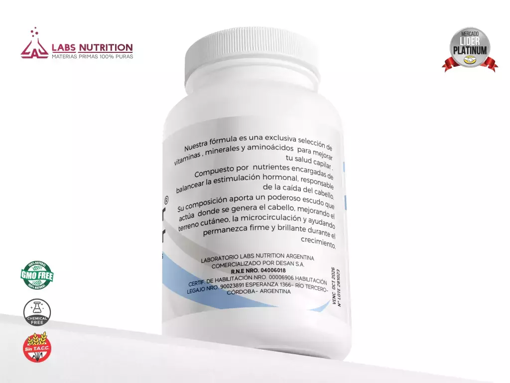 Compuesto por vitaminas y minerales encargadas de balancear la estimulación hormonal, responsable de la caída del cabello, revitalizando, mejorando la densidad y previniendo su caída, además del beneficio mismo a todo el organismo.